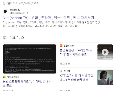 누누티비가 드디어 정부압박으로 서비스가 종료되었다. 오늘자로 누누티브이를 검색하면 포털에서는 사이트가 상단에 노출되지만 클릭하여 들어가면 사이트에 연결할 수 없음이라는 문구가 나온다. 공식앱에서는 누누티브이 공지안내를 통해 서비스 종료 안내문이 있는 상태이다.